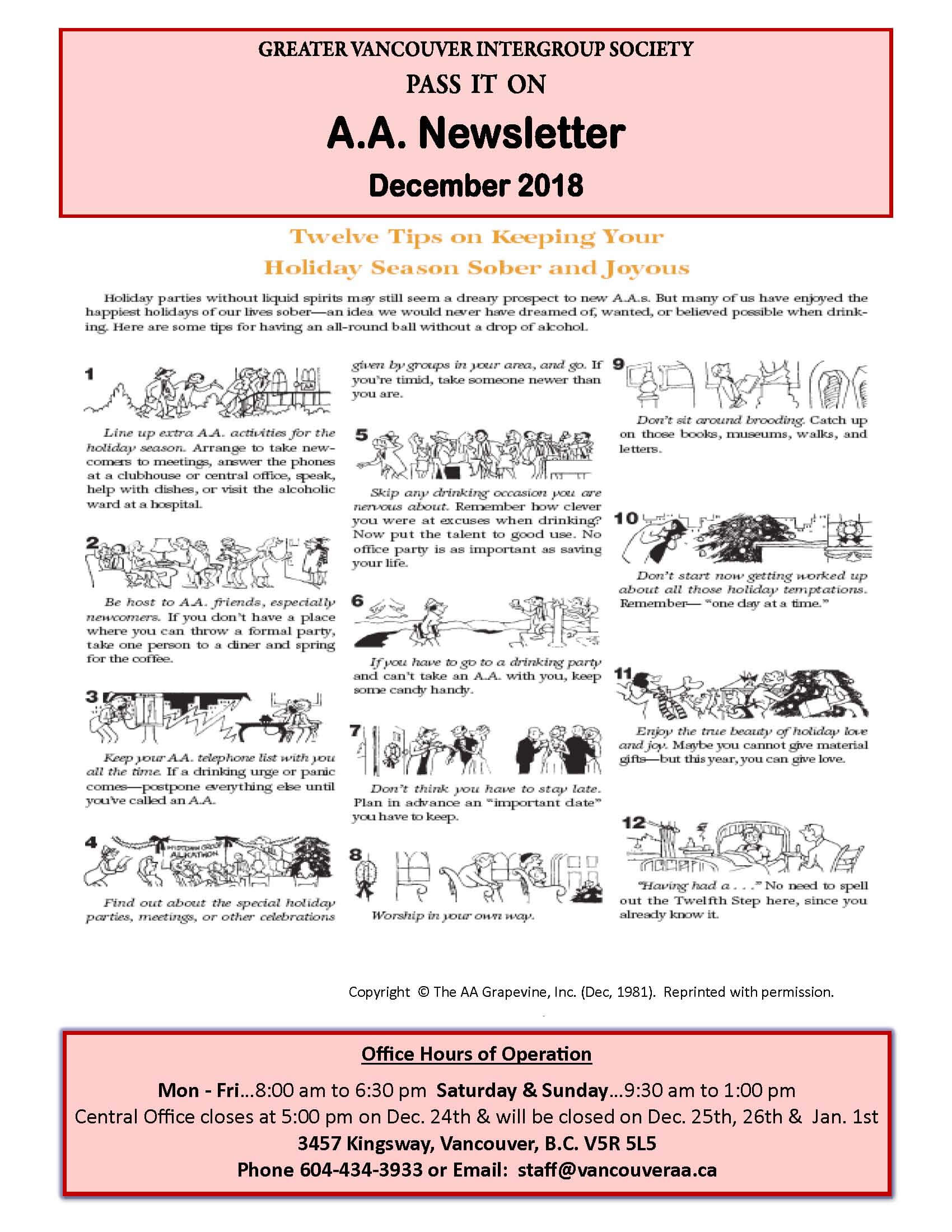 December 2018 Newsletter December 2018 Newsletter Vancouver Intergroup Society AA2020-07-20T00:08:00-07:00November 26th, 2018|Archived Newsletters| Related Posts August 2021 Newsletter August 2021 Newsletter June 2021 Newsletter June 2021 Newsletter May 2021 Newsletter May 2021 Newsletter April 2021 Newsletter April 2021 Newsletter February 2021 Newsletter February 2021 Newsletter