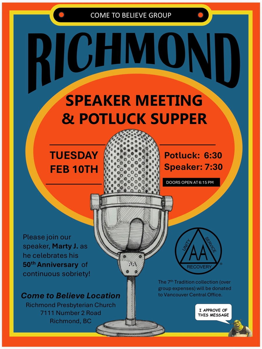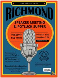 COME TO BELIEVE GRP: SPEAKER MEETING AND POTLUCK: 50yr celebration!