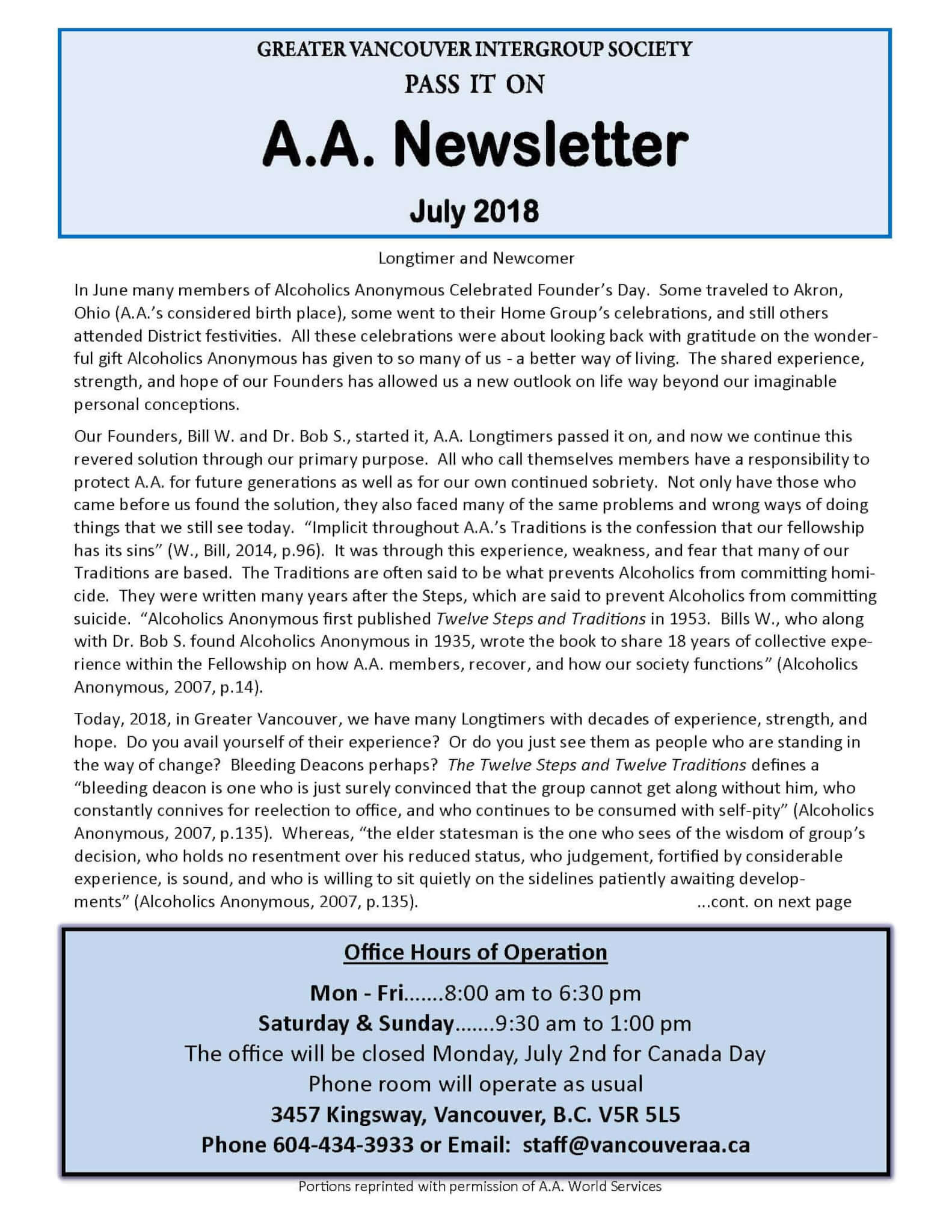 July 2018 Newsletter July 2018 Newsletter Vancouver Intergroup Society AA2020-07-20T00:07:59-07:00June 29th, 2018|Archived Newsletters| Related Posts August 2021 Newsletter August 2021 Newsletter June 2021 Newsletter June 2021 Newsletter May 2021 Newsletter May 2021 Newsletter April 2021 Newsletter April 2021 Newsletter February 2021 Newsletter February 2021 Newsletter